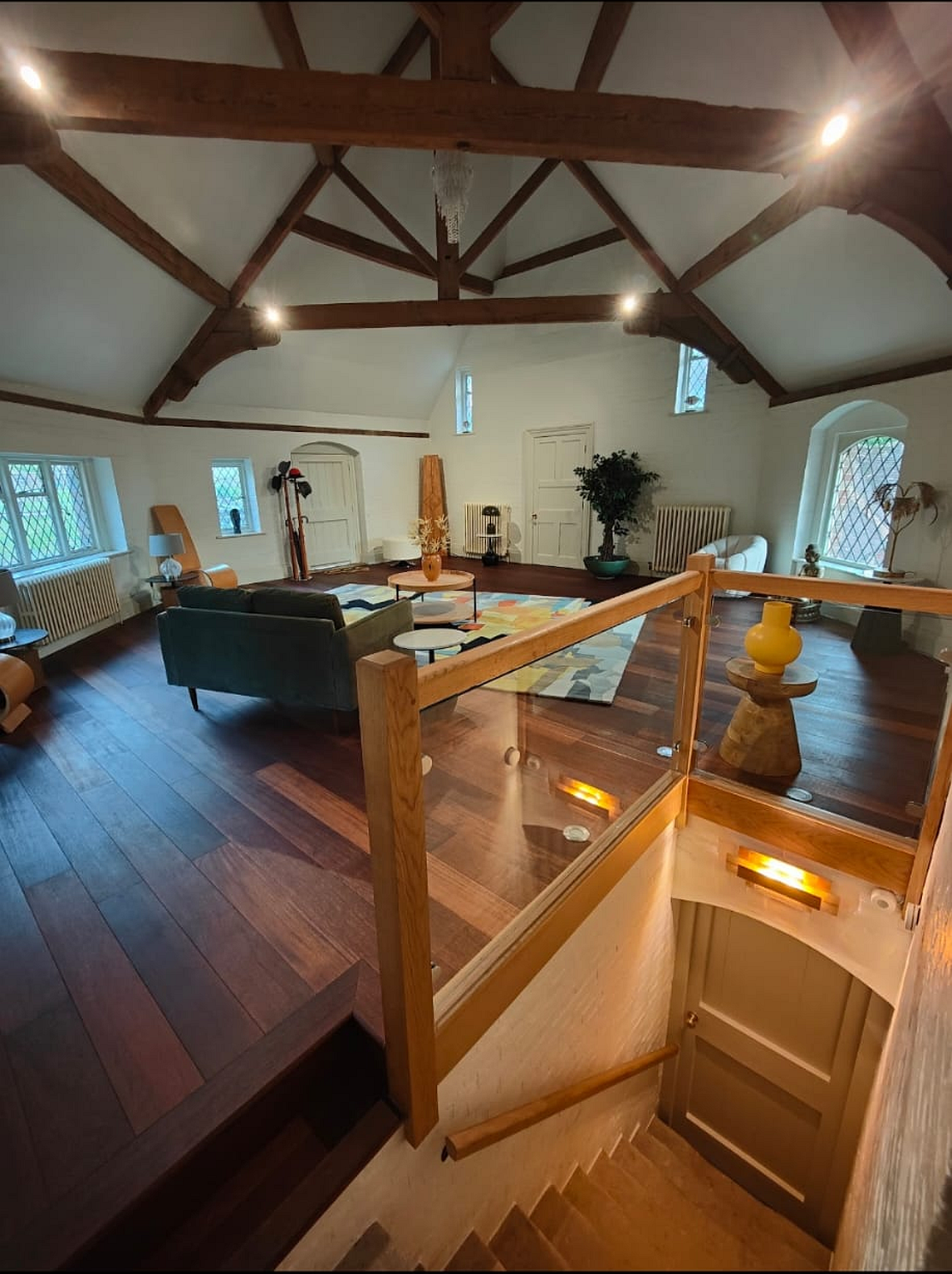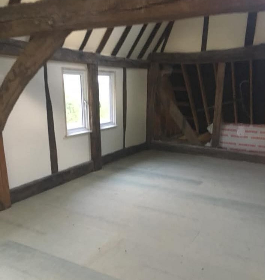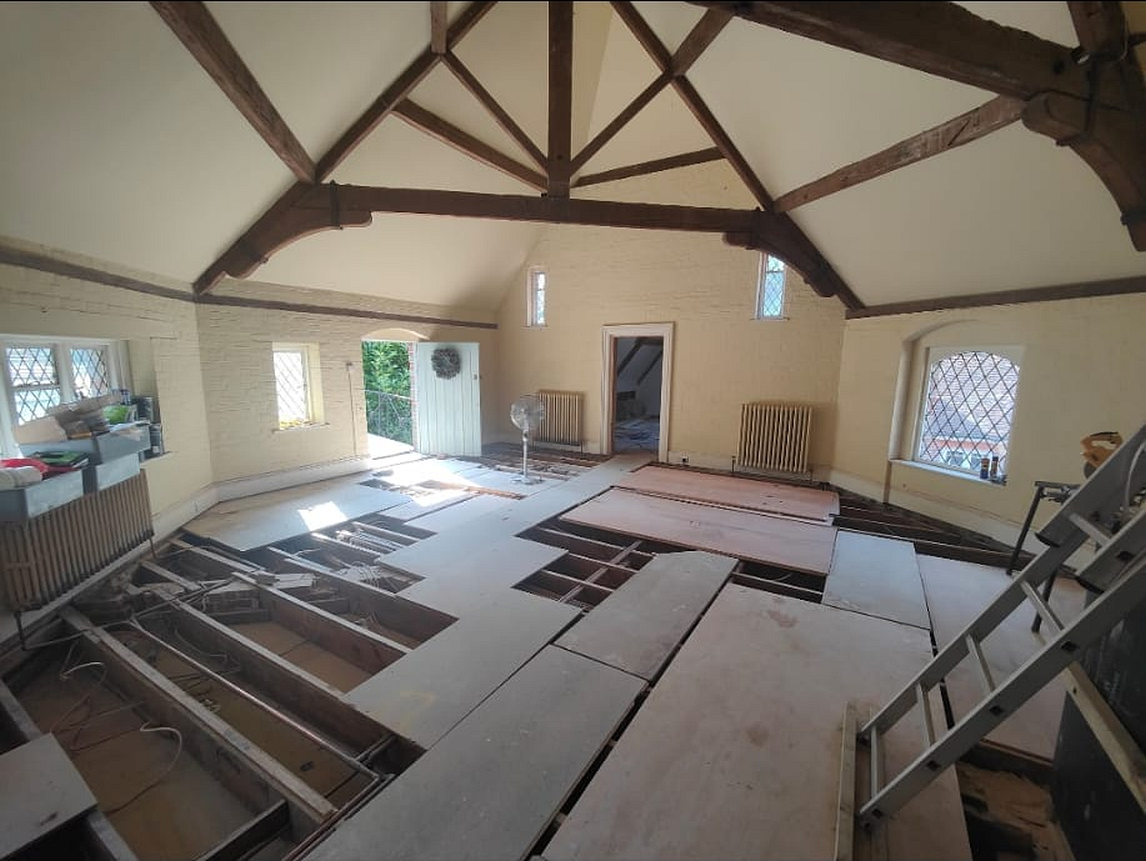 A recent building project, including re-running heating pipes, re-spraying cast iron radiators, running cables and new lights with a center piece chandelier installed on a 6m high ceiling. And a full rub down on walls and oak beams with a new engineered flooring leveled and installed.